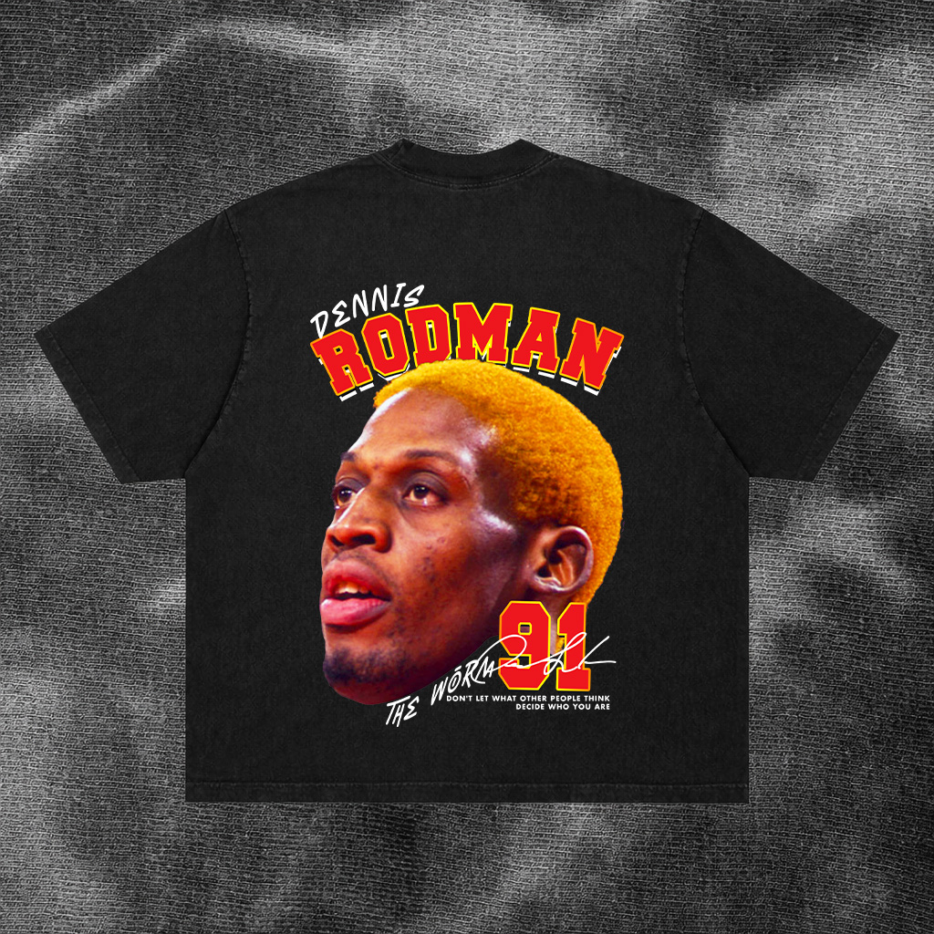 + Free Shipping- Channel the energy of the “The Worm” with this Dennis Rodman 91 graphic tee. Featuring a high-contrast portrait and bold varsity-style lettering, this shirt is a must-have for sports fans and vintage fashion enthusiasts. Our signature printing process ensures the colors stay bright even after multiple washes.